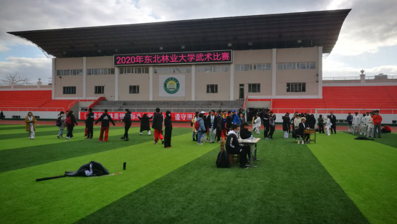 10月14日中午12:30分,在田径场举办了“2020年东北林业大学学生武术比赛”。来自本校的13个学院代表队、50多名运动员参加8个项目的角逐。赛会促进了武术社团与学校体育课教学有机结合,互动交流,为在校喜爱武术的同学搭建切磋交流,技艺展示平台,深受学生喜爱,成为校园一道独特靓丽的风景线。