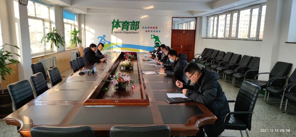 2021年12月14日上午,体育部召开中层干部会议,研究部署本学期期末考试工作,会议由李少先主任主持。