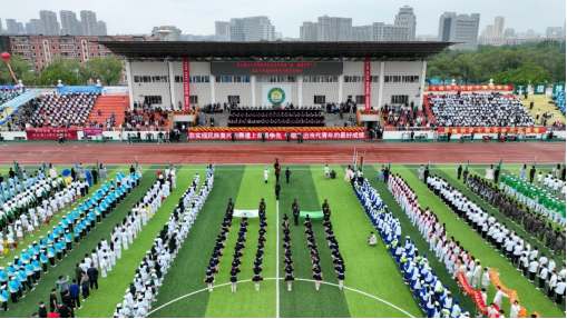 校长李斌在致辞中说,他为在预赛中雨中奔跑的运动员们积极向上的风采点赞,为经受疫情考验后师生如约共襄一年一度的全校体育盛事而欣慰。李斌校长细数疫情之下师生共同抗疫的温暖瞬间,向全校师生团结一心的抗疫行动表示诚挚敬意,向为此次运动会筹备付出辛勤劳动的师生员工、向参加运动会的裁判员、教练员、运动员表示衷心的感谢。李斌强调,学校一直高度重视体育工作,重视学生的德智体美劳全面发展和广大师生员工的体质健康。近几年,学校基础设施日趋完善,先后建成了标准田径场、篮球场等场馆;学校充分发挥各类体育运动组织、协会和社团的作用,将体育课程和课余锻炼作为教育教学关键环节,校园体育运动氛围日趋浓厚。本次运动会,既是全面检阅我校运动水平的盛事,更是全校师生展现奋进精神面貌、喜迎建校七十周年的盛会。李斌希望全校上下能够把体育锻炼融入到学习、生活、工作中,取得运动成绩与精神文明双丰收。